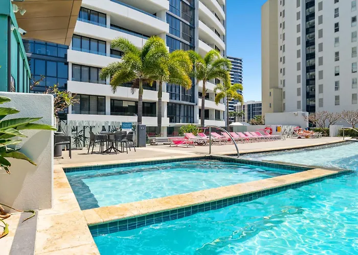 Ocean View 3 Bedroom Apt Broadbeach Gold Coast de 180 m² est situé dans le voisinage de "Broadbeach" à Gold Coast et offre un accès rapide au Centre de conventions et parc des expositions de Gold Coast, qui se trouve à environ 6 minutes de marche. Doté d'une terrasse, la résidence dispose également d'une piscine pour une détente ultime.